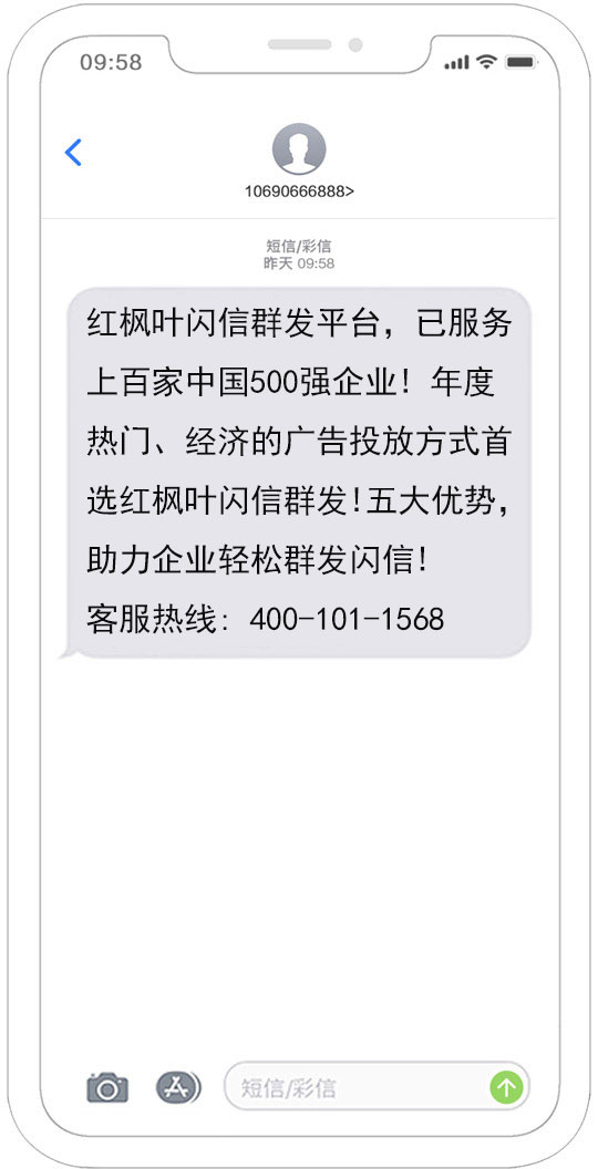 極速穩定的“云通信”平臺提供106短信群發、106彩信群發、視頻短信群發、閃信群發等服務!5分鐘快速注冊,10分鐘即可群發, 成本節約,紅楓葉傳媒10年通信領域研發深耕億級產品,海量短信資源,一站式接入服務。